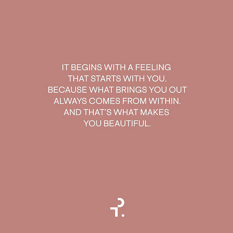 “It [beauty] can take you from invisible to unstoppable, insecure to empowered, self-conscious to self-confident. It begins with a feeling that starts with you, because what brings you out, always comes from within.”
